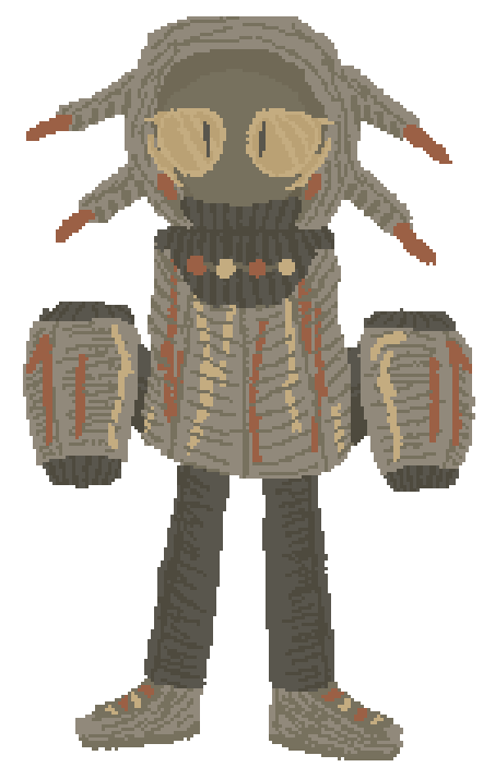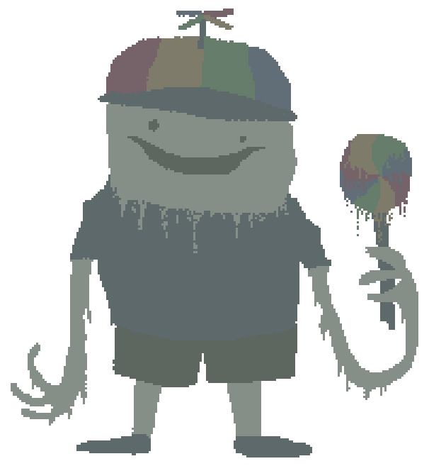 Hernan Moreno's Capstone Project was a horror game based on his personal experience working in a bowling alley diner. I had initially created a childlike monster due to the assumption that children would be the biggest threat to a retail worker, but he surprised me by stating that it was the managers and the parents that would cause him the most trouble. I am looking for an opportunity to make a new mascot for him at some point.