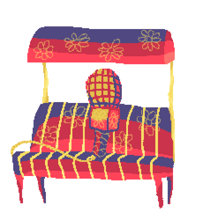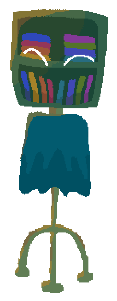 Quinn Okker's Capstone Project was an interior design capstone. The first thing I noticed was the lighting sample that was provided was quite colorful and attention-grabbing. This would end up being the color palette for the character. I also decided to use the bookcase in the room as a head, the carpet as a cloak, and the light stand as a body and legs.