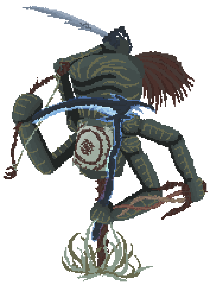 Megan Jaquett's Capstone Project was a modeling project where she would make 5 3D weapon assets. I made a four-armed knight who wields four of these weapons and incorporated the staff/magical rod into the lower body of the knight, making it look like a magical scarecrow. The desaturated colors and unusual proportions of the knight are reminiscent of dark, grim fantasy armors that one might see in a game like Dark Souls.